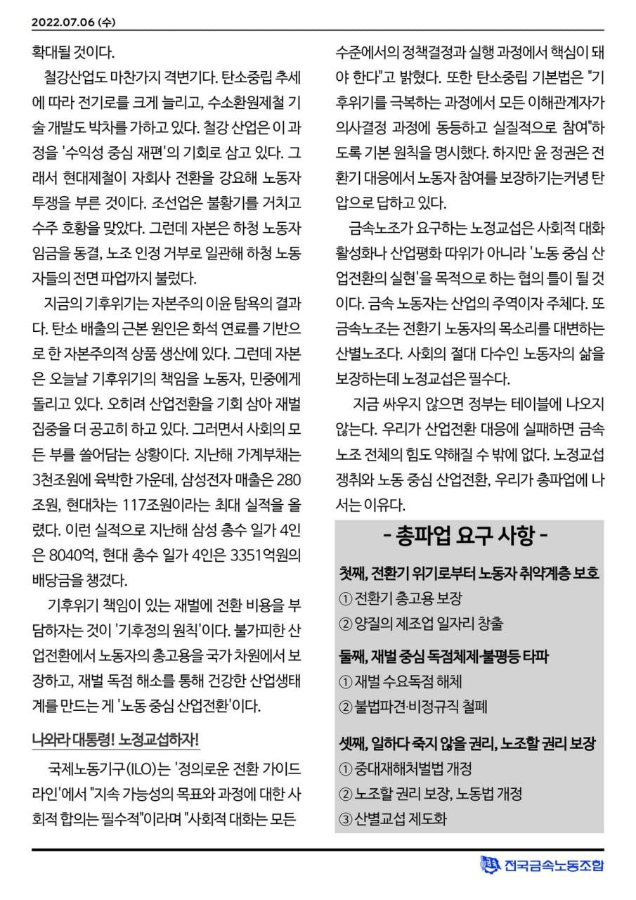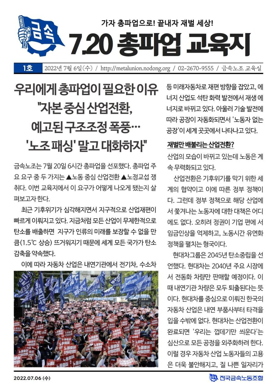 2022³â 7¿ù 18ÀÏ (¿ù) 7.20 ±Ý¼Ó³ëÁ¶ ÃÑÆÄ¾÷ ´ëȸ ¹®¼±´ë Áý°áÀÇ¡¦
