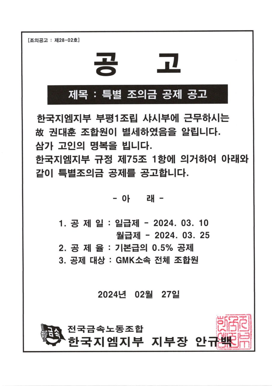 Ưº° Á¶ÀÇ±Ý °øÁ¦ °ø°í
