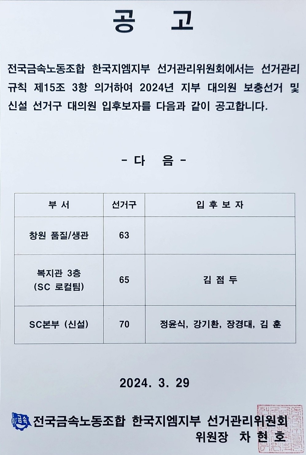 2024³â ÁöºÎ ´ëÀÇ¿ø º¸Ãæ¼±°Å ¹× ½Å¼³ ¼±°Å±¸ ´ëÀÇ¿ø ÀÔÈĺ¸ÀÚ °ø°í