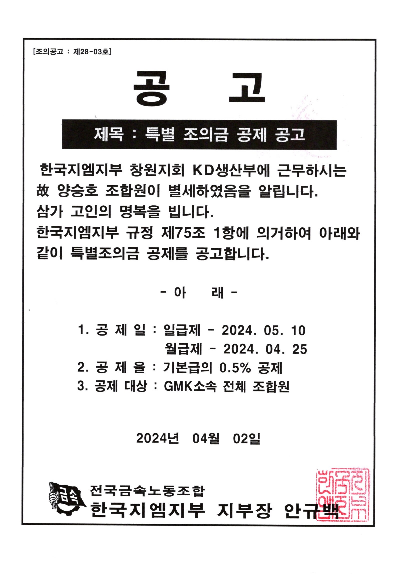 Ưº° Á¶ÀÇ±Ý °øÁ¦ °ø°í