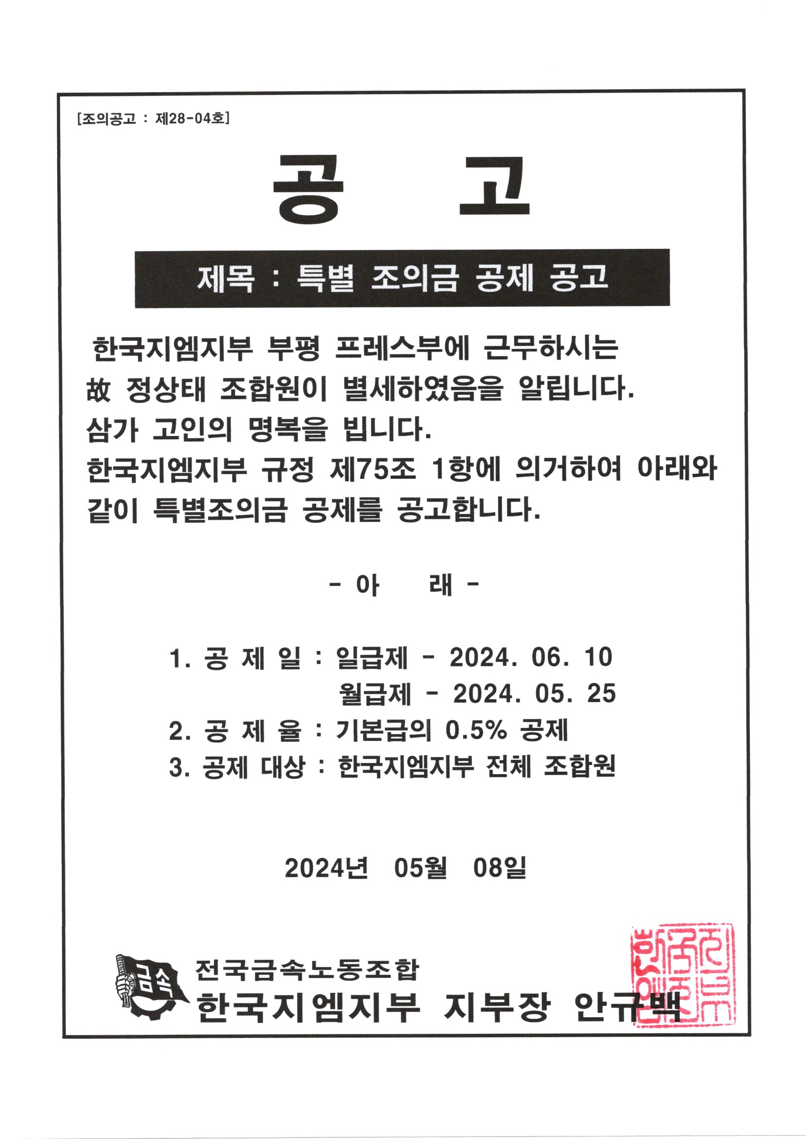 Ưº° Á¶ÀÇ±Ý °øÁ¦ °ø°í