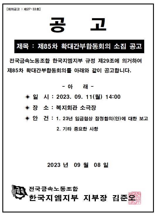 Á¦85Â÷ È®´ë°£ºÎÇÕµ¿È¸ÀÇ ¼ÒÁý °ø°í