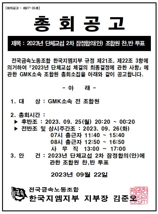 2023³â ´Üü±³¼· 2Â÷ ÀáÁ¤ÇÕÀÇ(¾È)Á¶ÇÕ¿ø Âù,¹Ý ÅõÇ¥ ÃÑȸ°ø°í