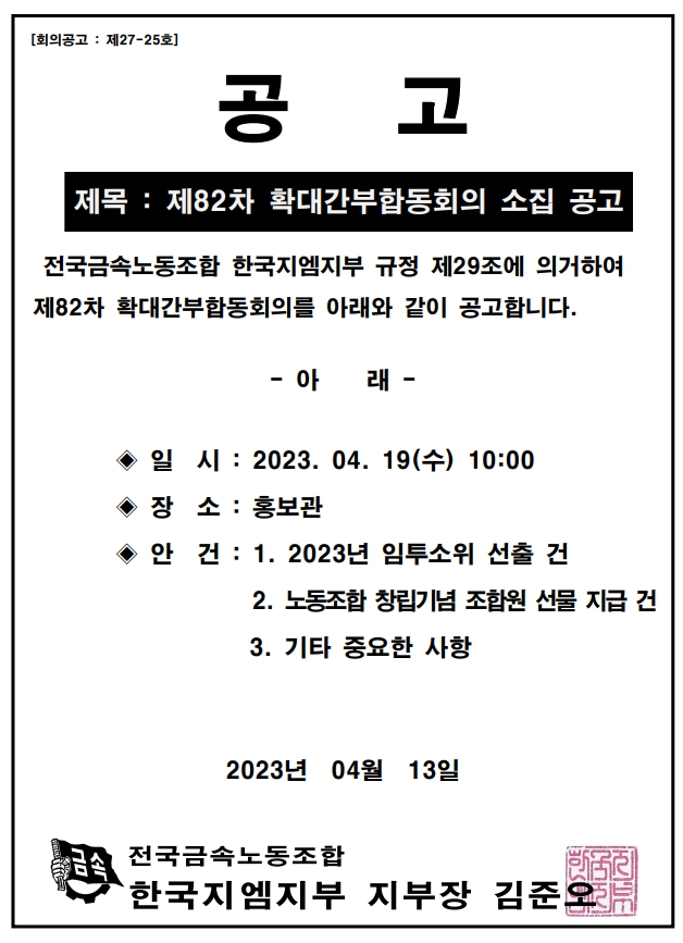 Á¦82Â÷ È®´ë°£ºÎÇÕµ¿È¸ÀÇ ¼ÒÁý °ø°í
