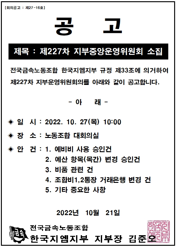 (°ø°í)Á¦227Â÷ ÁöºÎÁ߾ӿÀ§¿øÈ¸ ¼ÒÁý