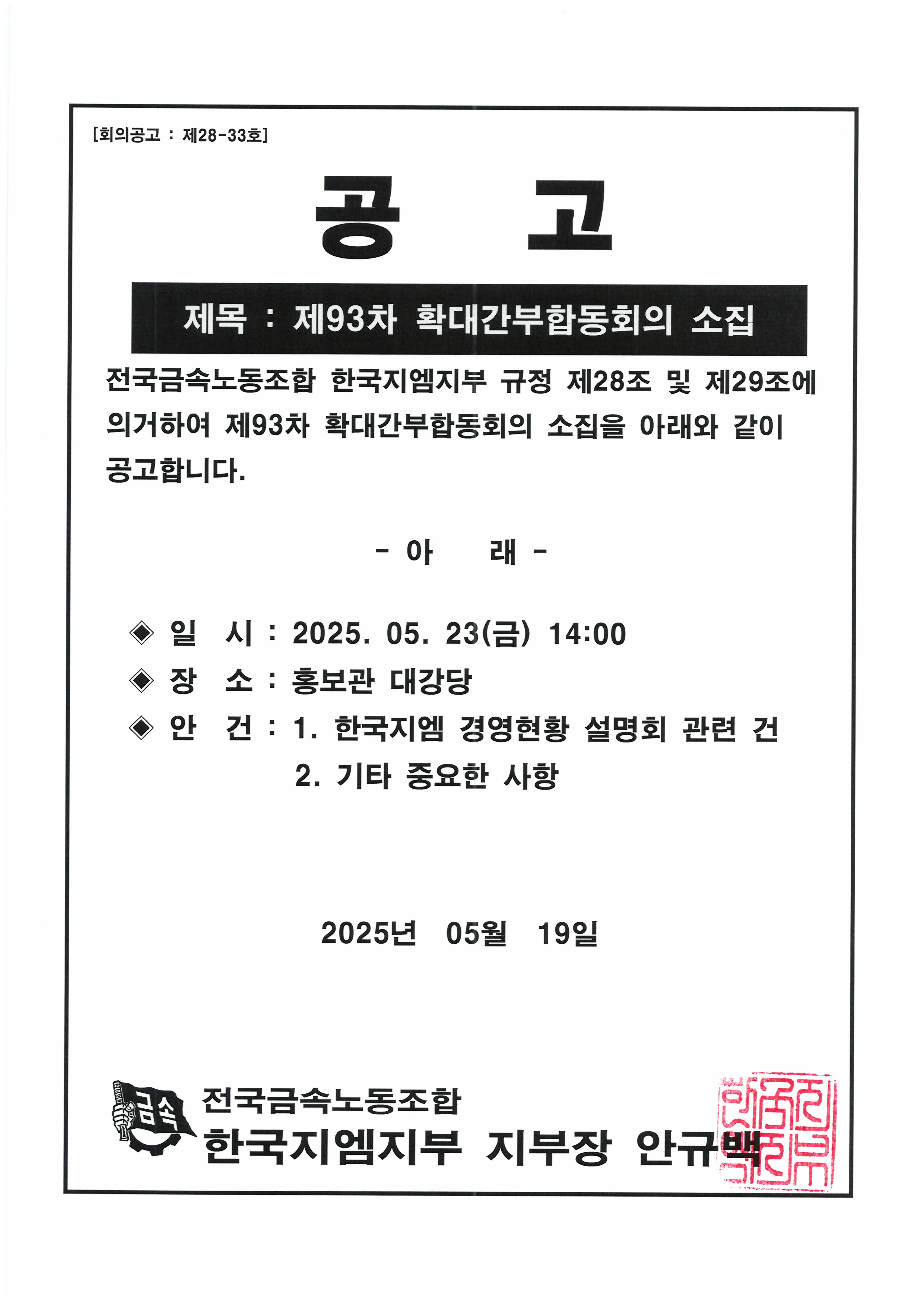 Á¦93Â÷ È®´ë°£ºÎ ÇÕµ¿È¸ÀÇ ¼ÒÁý °ø°í