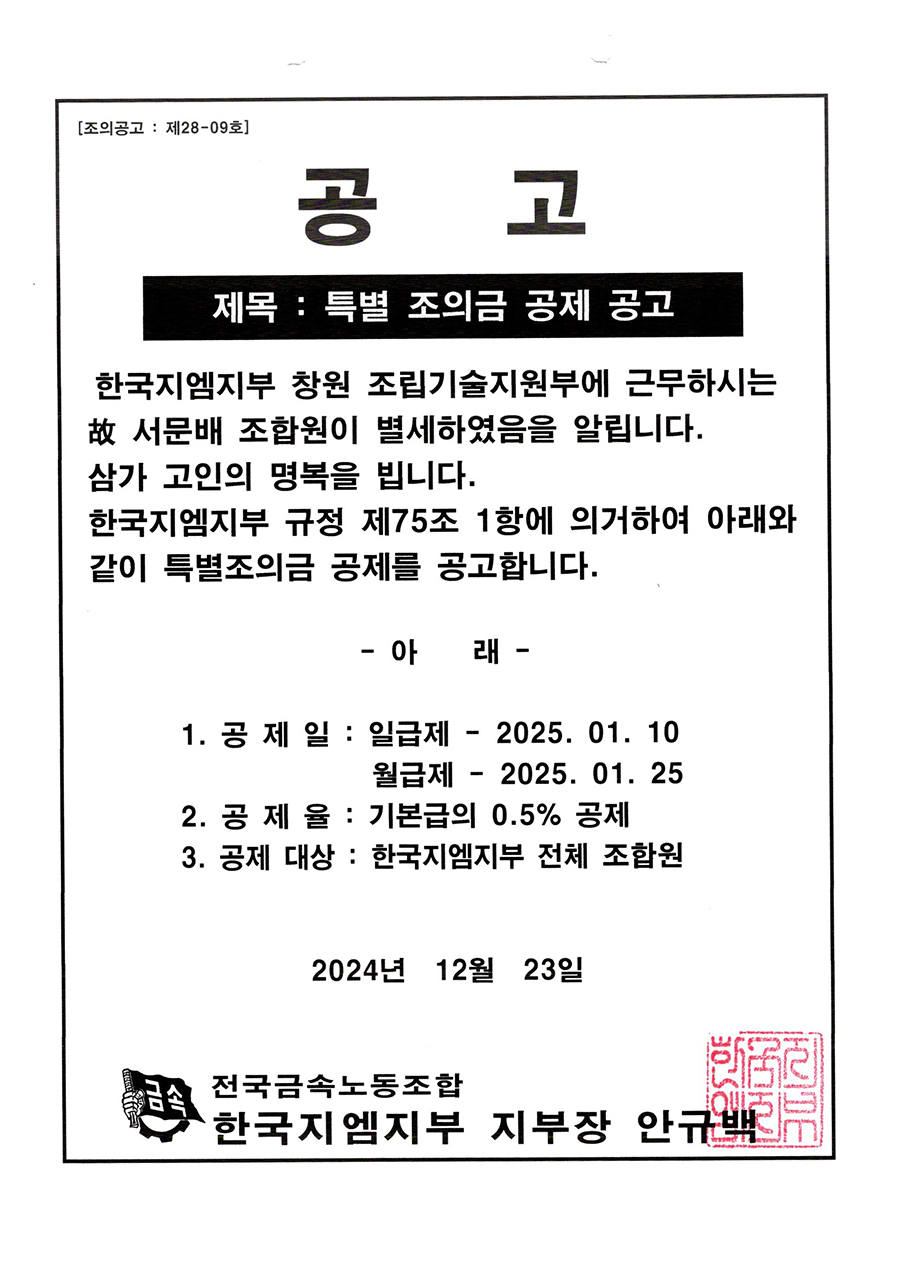 Ưº° Á¶ÀÇ±Ý °øÁ¦ °ø°í