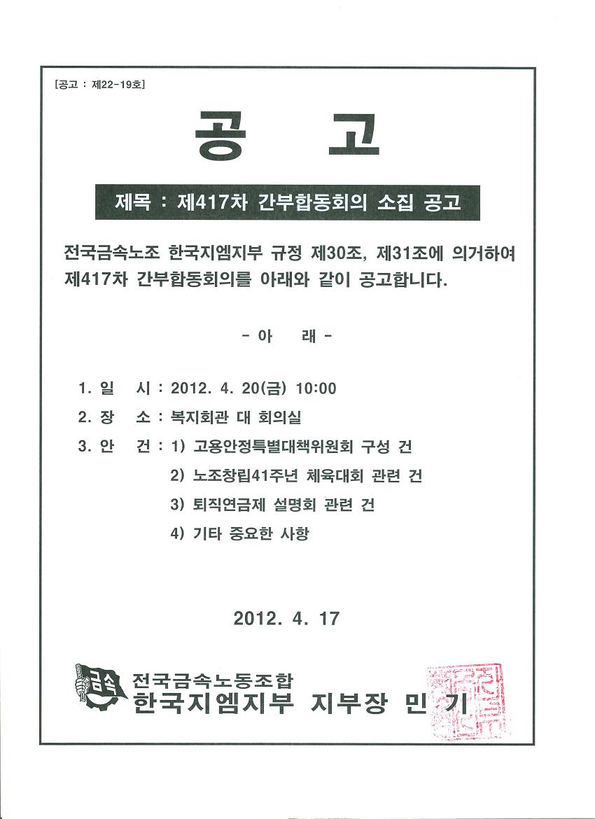 [°ø°í]Á¦ 417Â÷ °£ºÎÇÕµ¿È¸ÀÇ ¼ÒÁý°ø°í