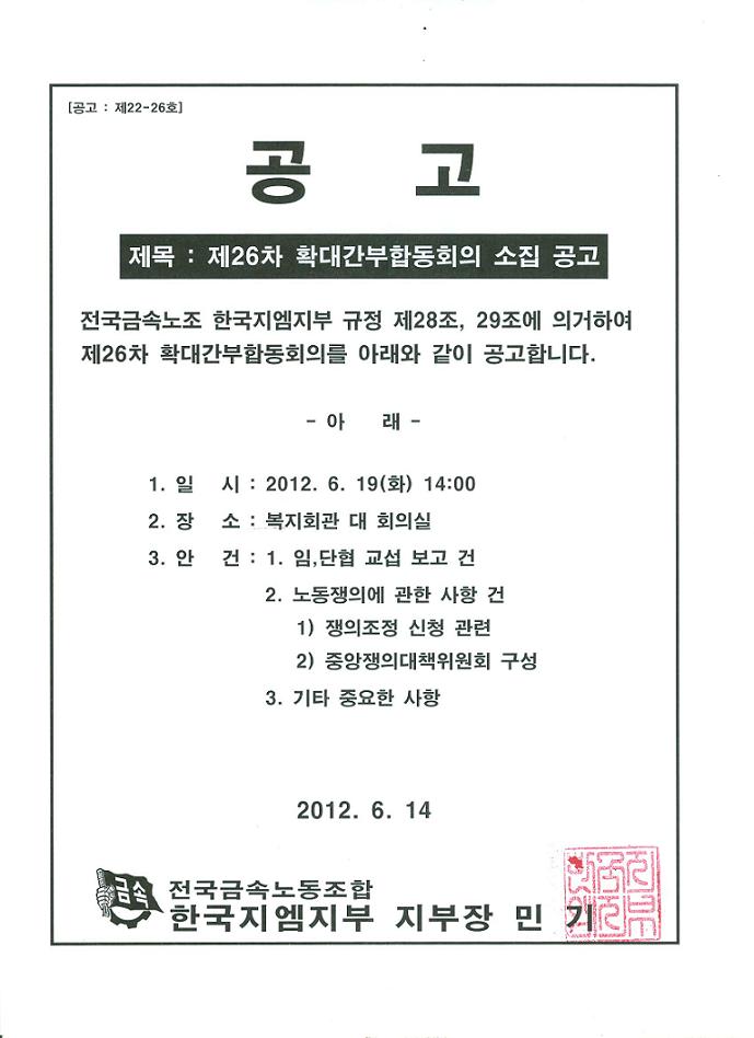 Á¦ 26Â÷ È®´ë°£ºÎ ÇÕµ¿È¸ÀÇ °ø°í
