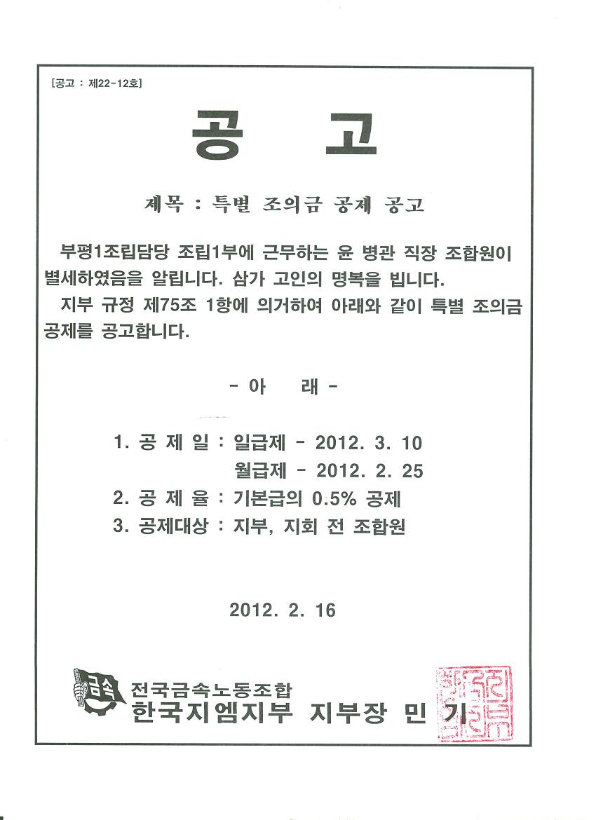 Á¶¸³1ºÎ À±º´°ü Á¶ÇÕ¿ø Ưº°Á¶ÀÇ±Ý °øÁ¦