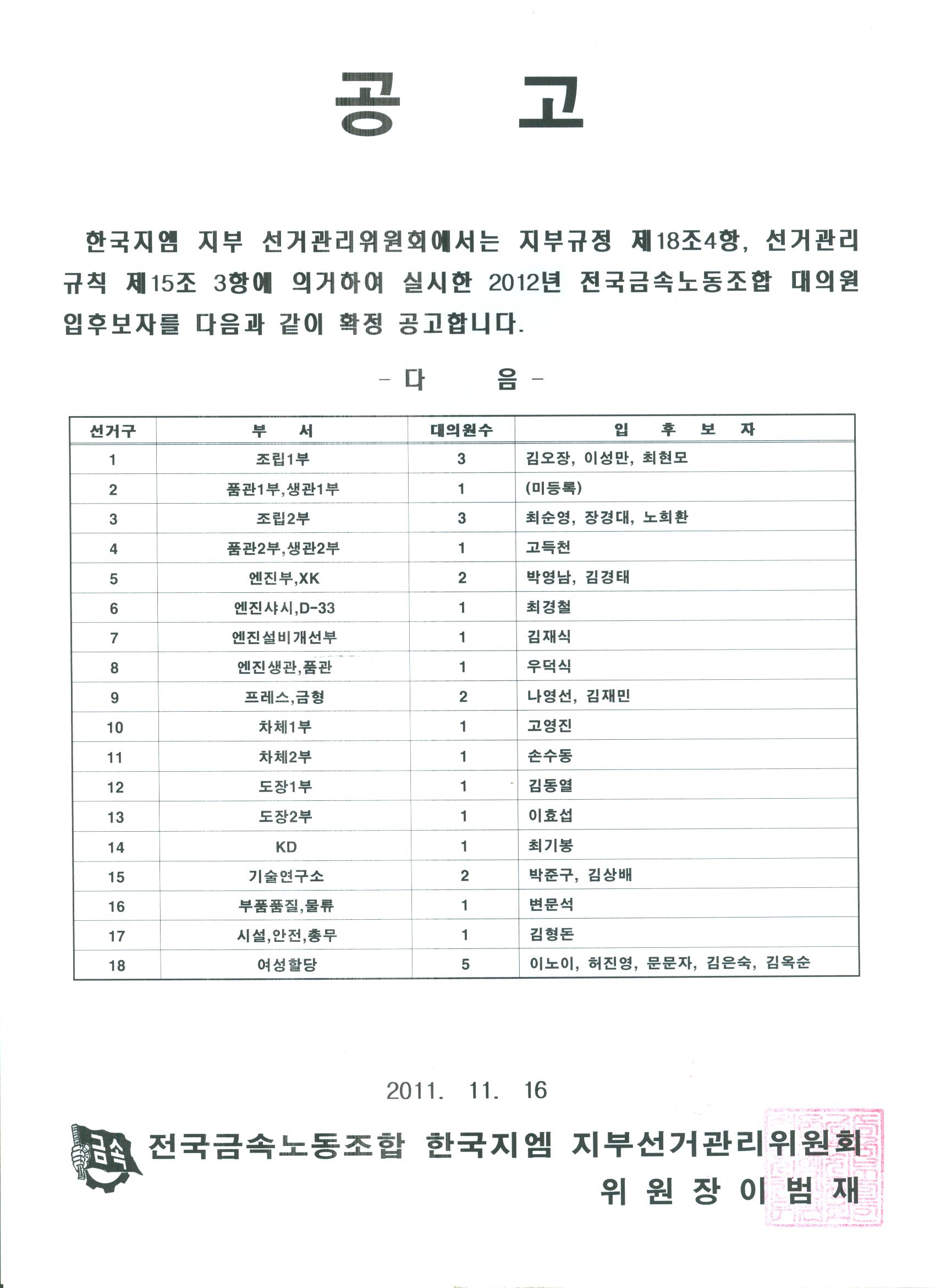 2012³â ÁöºÎ ´ëÀÇ¿ø Èĺ¸ È®Á¤ °ø°í