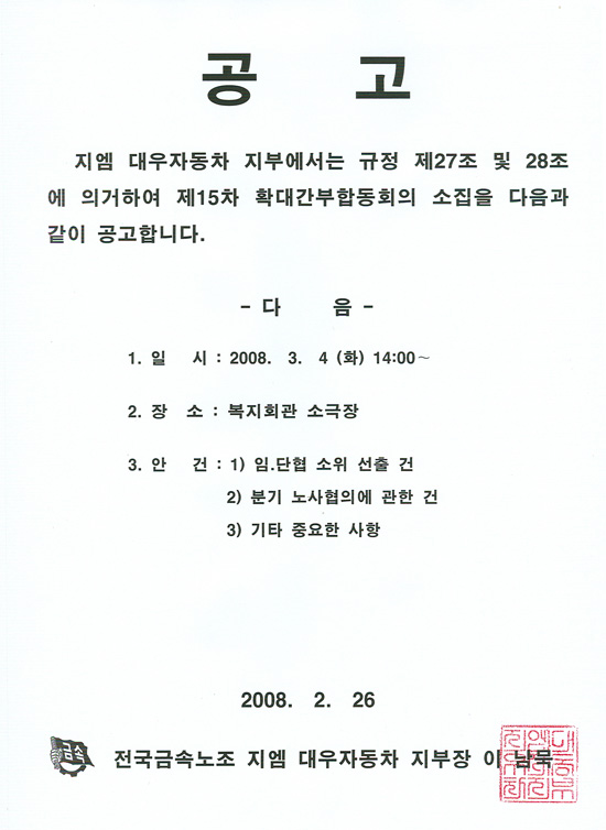 [ȸÀÇ] Á¦15Â÷ È®´ë°£ºÎÇÕµ¿È¸ÀÇ ¼ÒÁý°ø°í