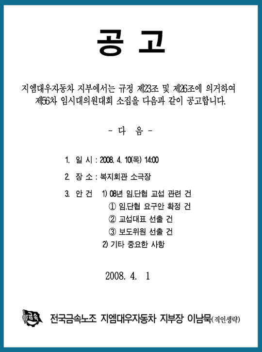 [ȸÀÇ] Á¦56Â÷ ÀӽôëÀÇ¿ø´ëȸ ¼ÒÁý°ø°í
