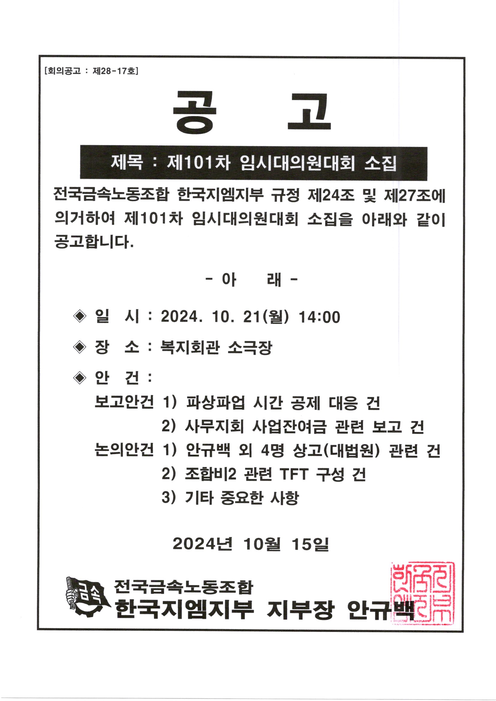 Á¦101Â÷ ÀӽôëÀÇ¿ø´ëȸ ¼ÒÁý°ø°í