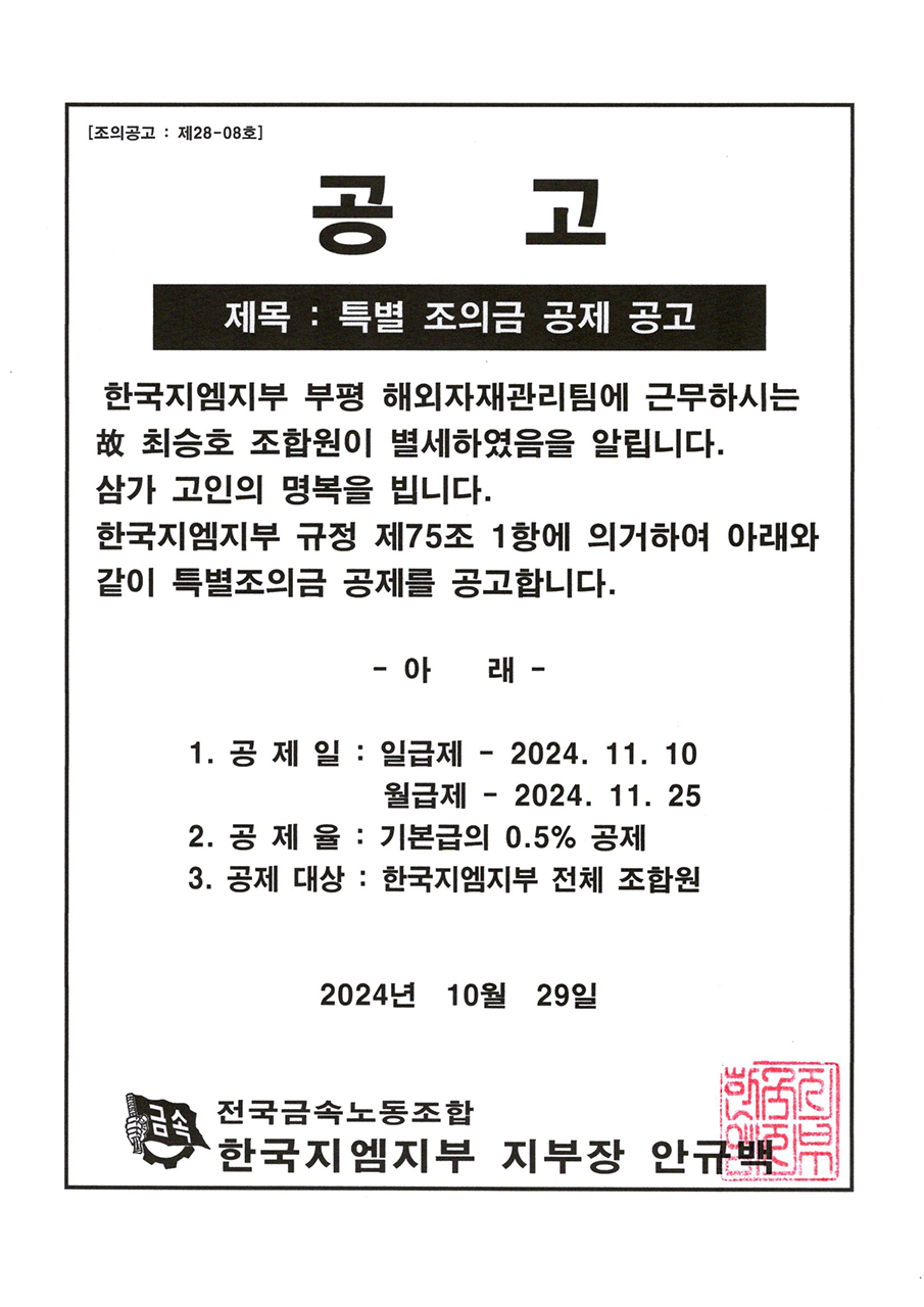 Ưº° Á¶ÀÇ±Ý °øÁ¦ °ø°í