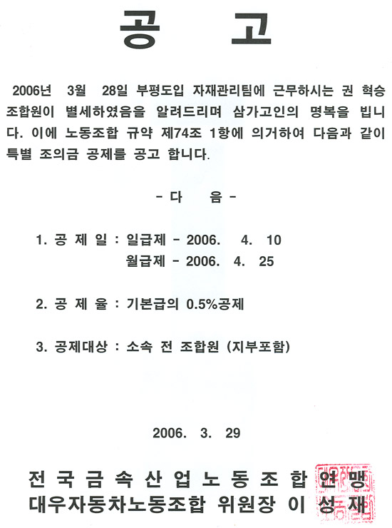 Ưº° Á¶ÀÇ±Ý °øÁ¦ °ø°í