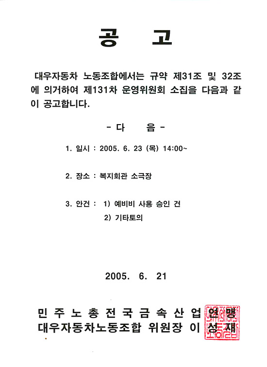 131Â÷ ¿î¿µÀ§¿øÈ¸ °ø°í¹®