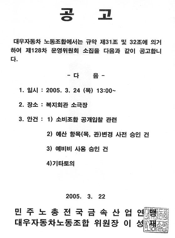 Á¦128Â÷ ¿î¿µÀ§¿øÈ¸ °ø°í