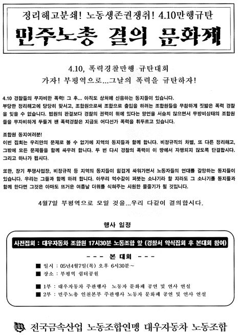 4¿ù10ÀÏ ¸¸Çà±Ôź ¹ÎÁÖ³ëÃѰáÀÇ ¹®ÈÁ¦