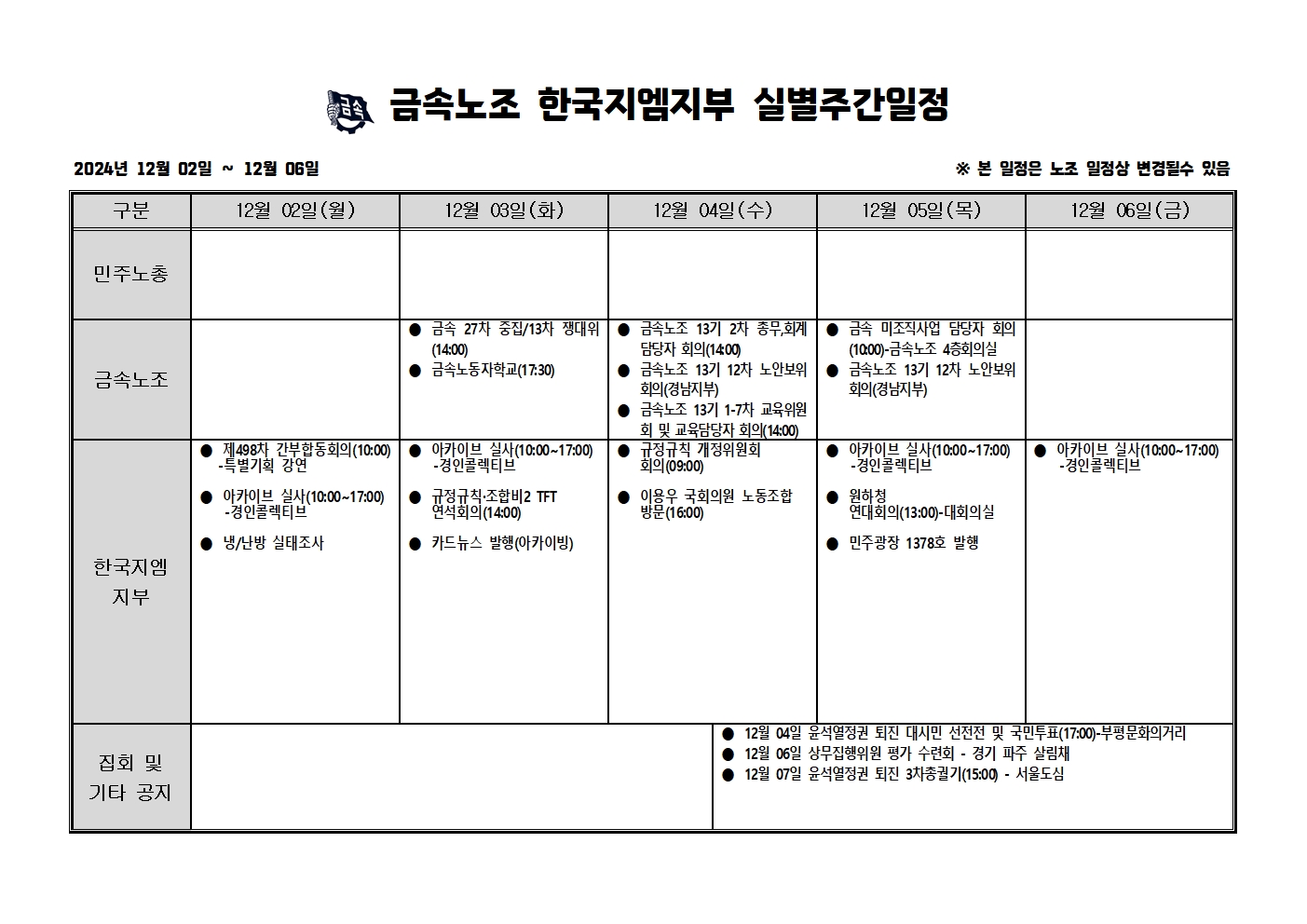 2024³â 12¿ù02ÀÏ ~12¿ù06ÀÏ ÁÖ°£ÀÏÁ¤Ç¥ÀÔ´Ï´Ù