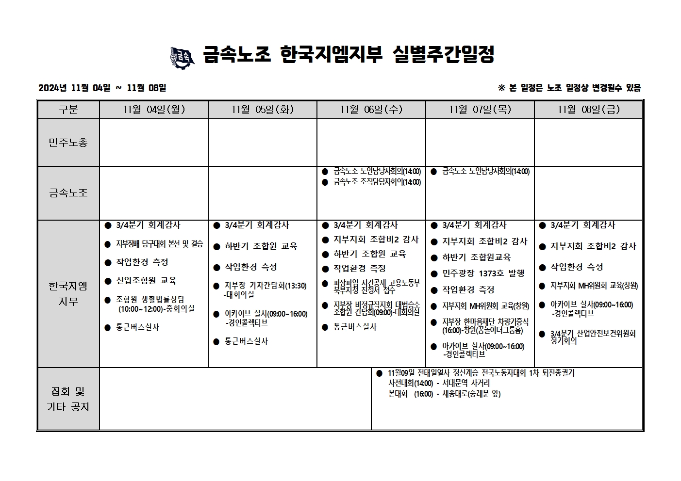 2024³â 11¿ù04ÀÏ ~11¿ù08ÀÏ ÁÖ°£ÀÏÁ¤Ç¥ÀÔ´Ï´Ù