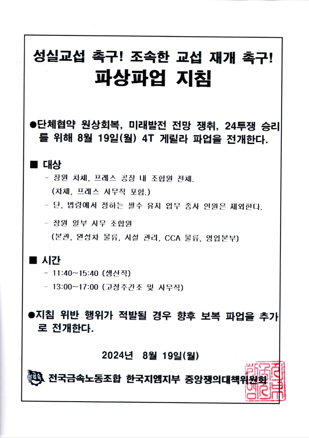 (9/4) Çѱ¹Áö¿¥ ºÒ¹ýÆÄ°ß Ưº°±³¼· ¹× 4´ë¿ä±¸ÀïÃë ±Ý¼Ó³ëµ¿ÀÚ ¡¦