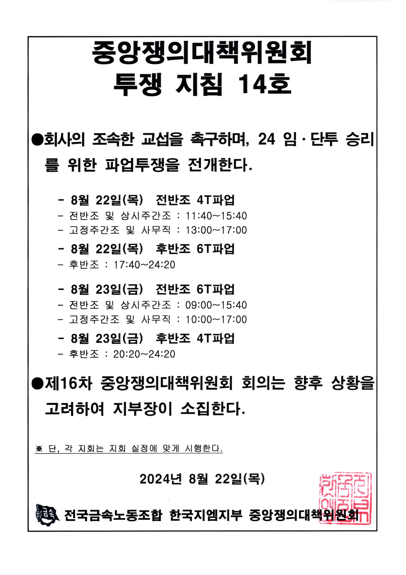 (8/22) Áß¾ÓÀïÀÇ´ëÃ¥À§¿øÈ¸ ÅõÀïÁöħ14È£