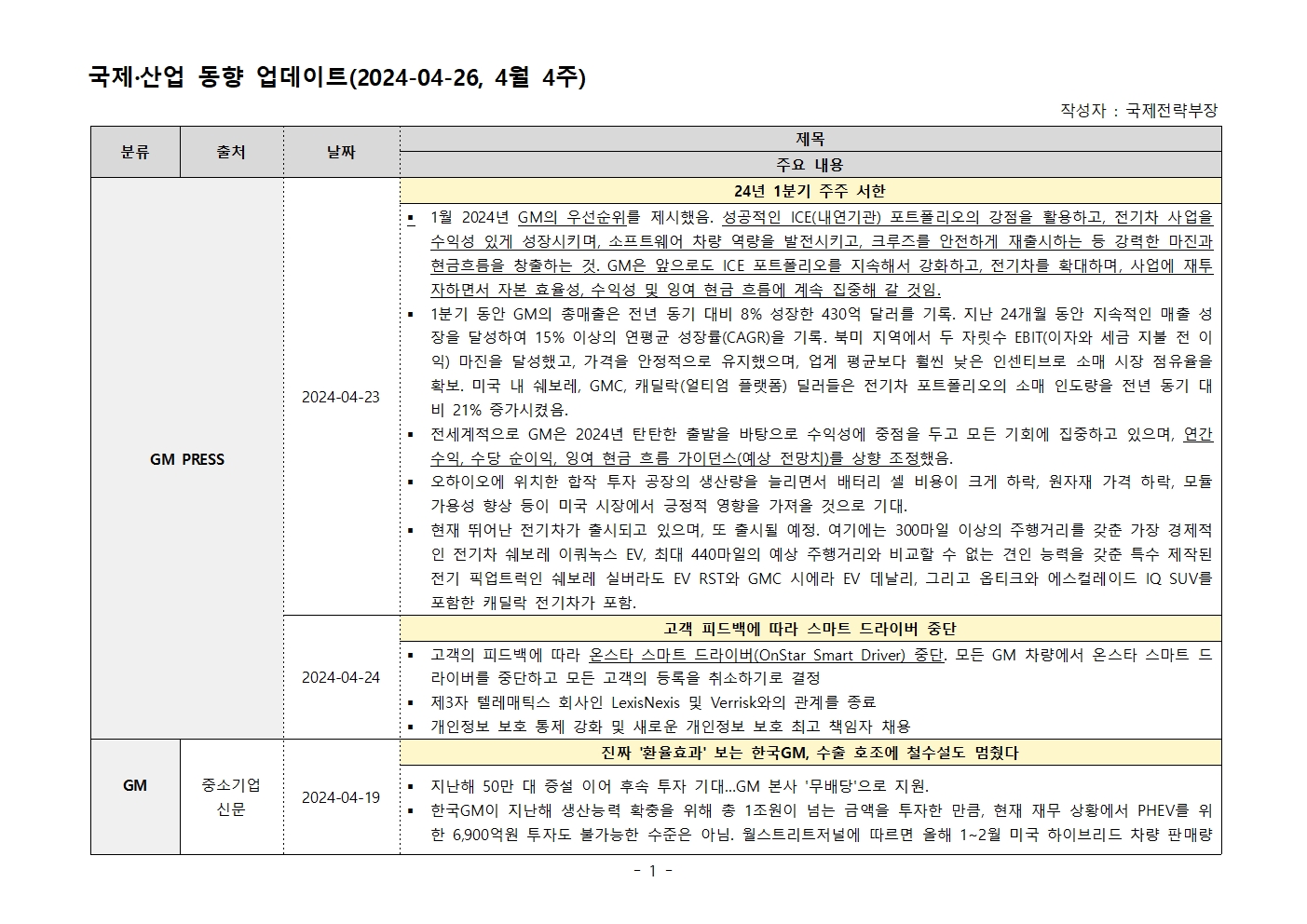 ±¹Á¦ ¹× »ê¾÷ µ¿Çâ ¾÷µ¥ÀÌÆ®(4¿ù 3ÁÖ)