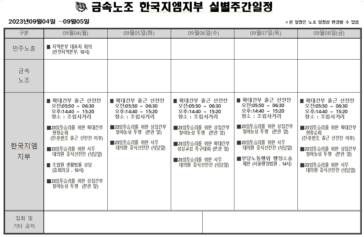 2023³â 09¿ù04ÀÏ ~ 09¿ù08ÀÏ ÁÖ°£ÀÏÁ¤Ç¥ÀÔ´Ï´Ù