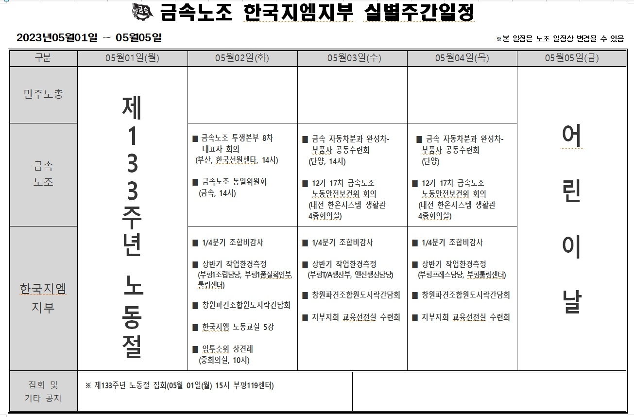 2023³â 05¿ù01ÀÏ ~ 05¿ù05ÀÏ ÁÖ°£ÀÏÁ¤Ç¥ÀÔ´Ï´Ù