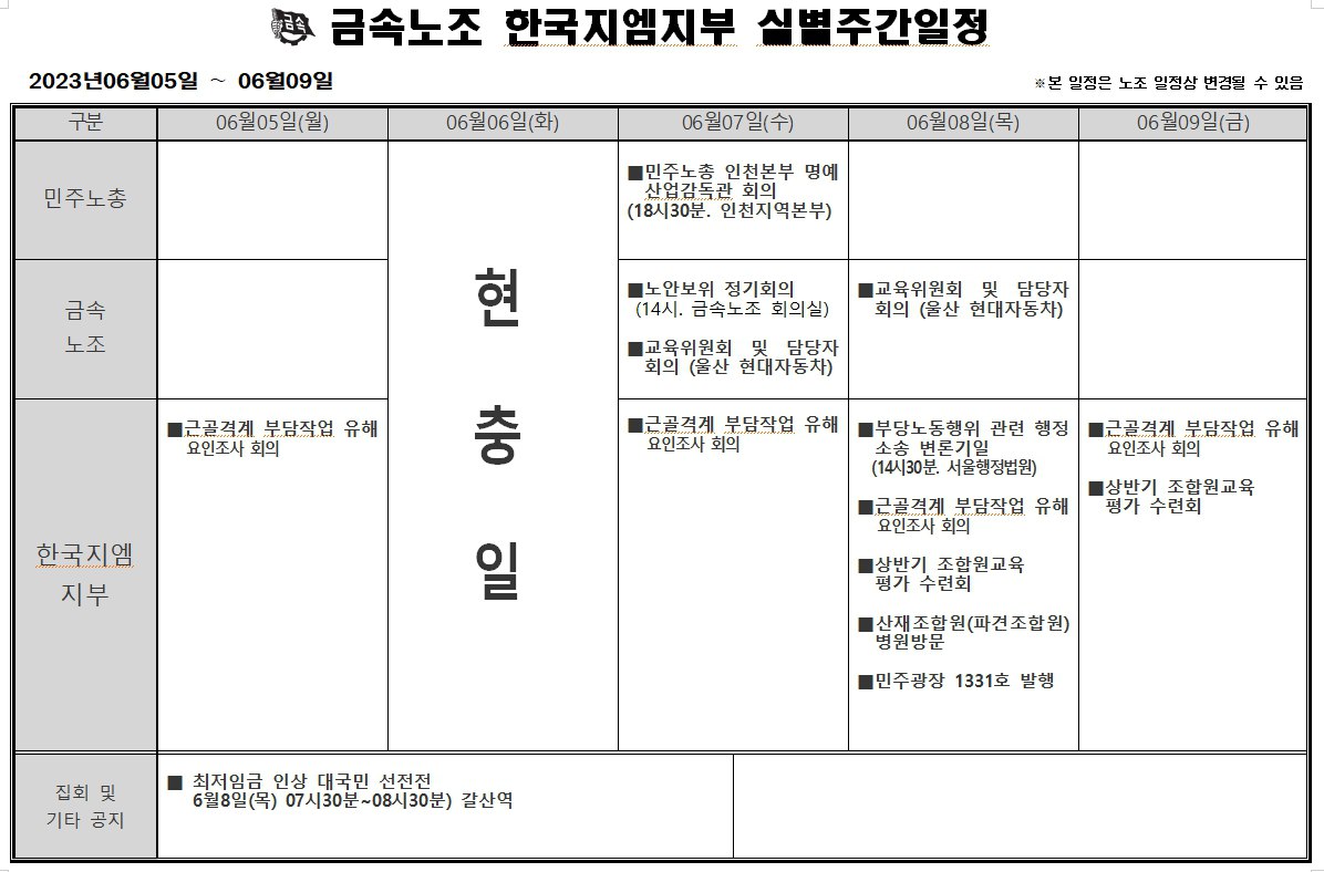 2023³â 06¿ù05ÀÏ ~ 06¿ù09ÀÏ ÁÖ°£ÀÏÁ¤Ç¥ÀÔ´Ï´Ù