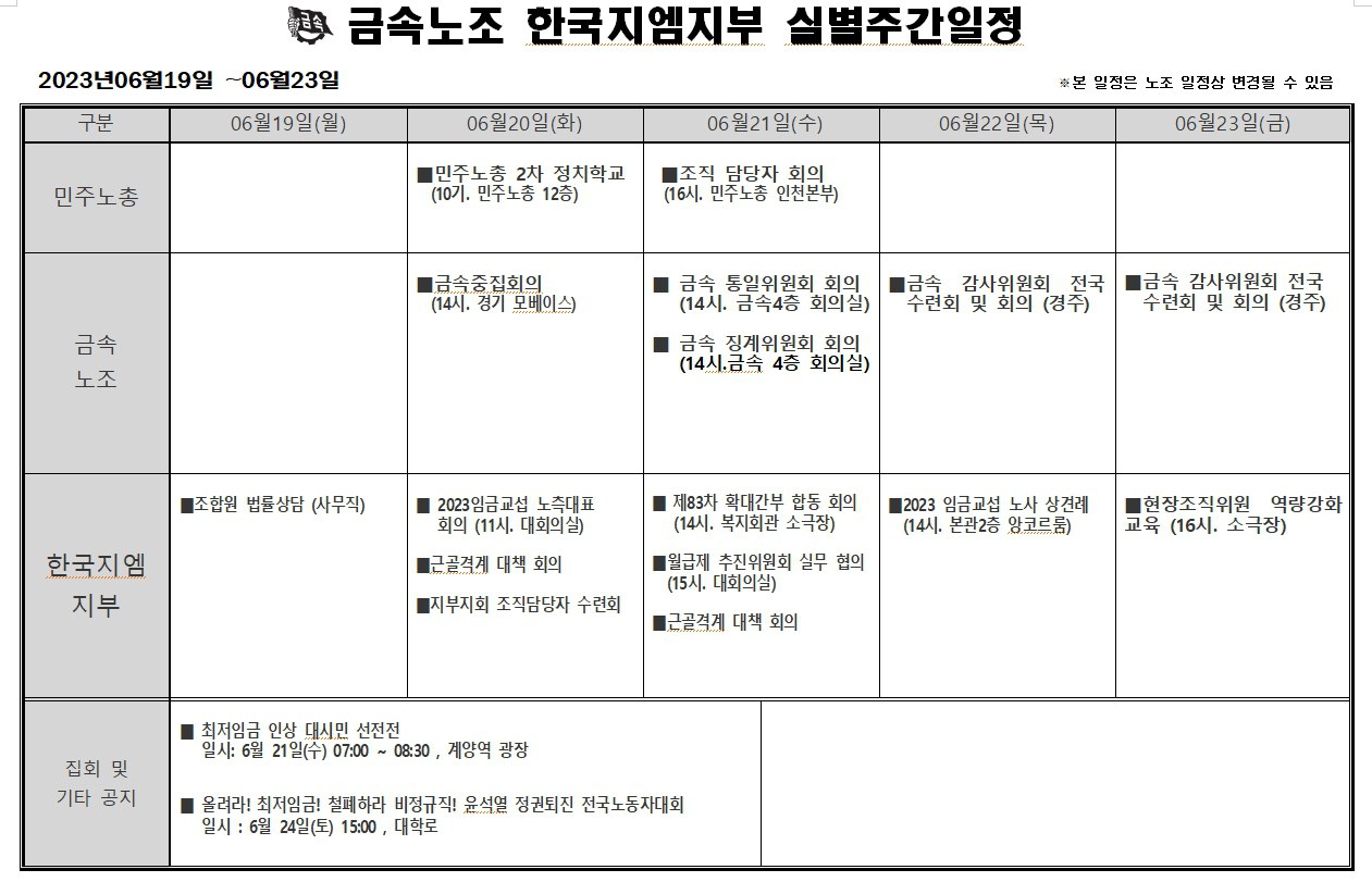 2023³â 06¿ù19ÀÏ ~ 06¿ù23ÀÏ ÁÖ°£ÀÏÁ¤Ç¥ÀÔ´Ï´Ù