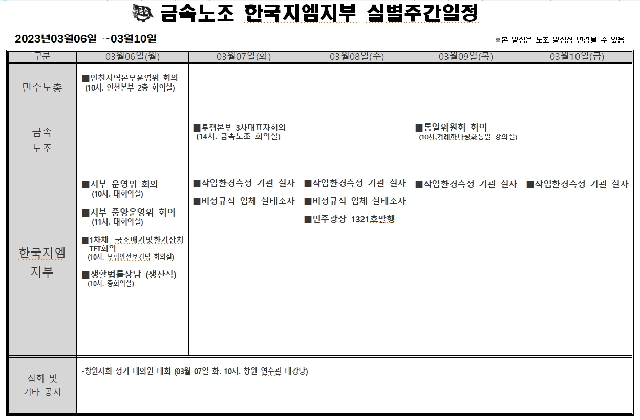 2023³â 03¿ù06ÀÏ ~ 03¿ù10ÀÏ ÁÖ°£ÀÏÁ¤Ç¥ÀÔ´Ï´Ù