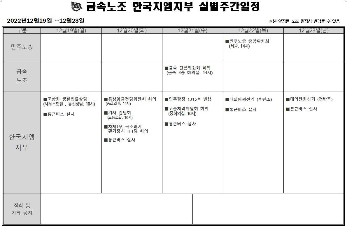 2022³â 12¿ù12ÀÏ ~ 12¿ù16ÀÏ ÁÖ°£ÀÏÁ¤Ç¥ÀÔ´Ï´Ù
