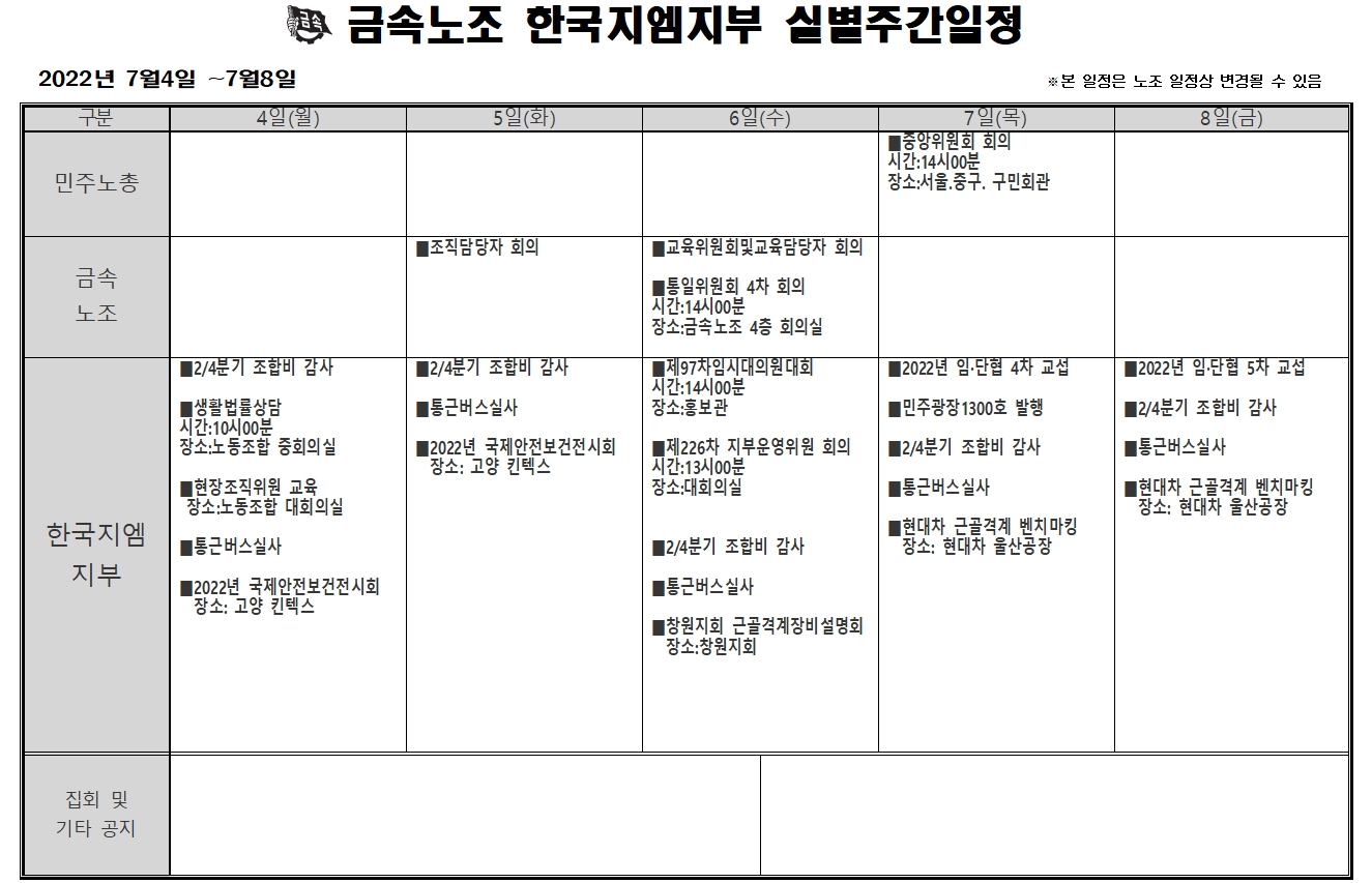 2022³â 07¿ù04ÀÏ ~ 07¿ù08ÀÏ ÁÖ°£ÀÏÁ¤Ç¥ÀÔ´Ï´Ù