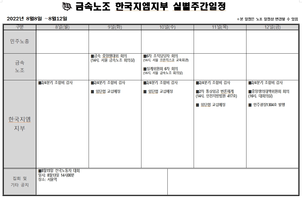 2022³â 08¿ù08ÀÏ ~ 08¿ù12ÀÏ ÁÖ°£ÀÏÁ¤Ç¥ÀÔ´Ï´Ù