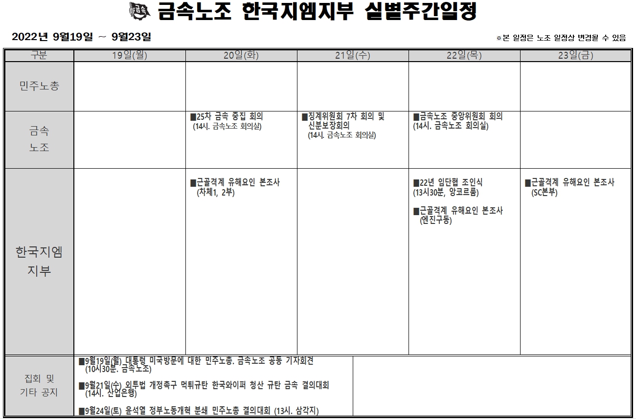 2022³â 09¿ù19ÀÏ ~ 09¿ù23ÀÏ ÁÖ°£ÀÏÁ¤Ç¥ÀÔ´Ï´Ù