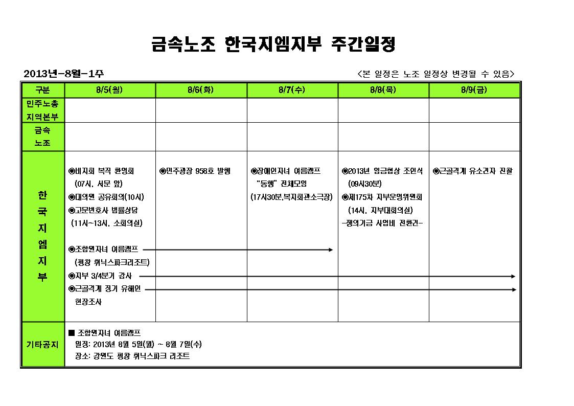 ÁÖ°£ÀÏÁ¤ 8¿ù 1ÁÖÂ÷