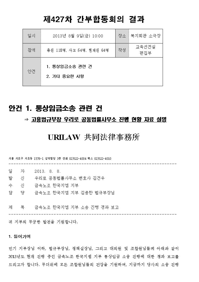 Á¦427Â÷ °£ºÎÇÕµ¿È¸ÀÇ °á°ú