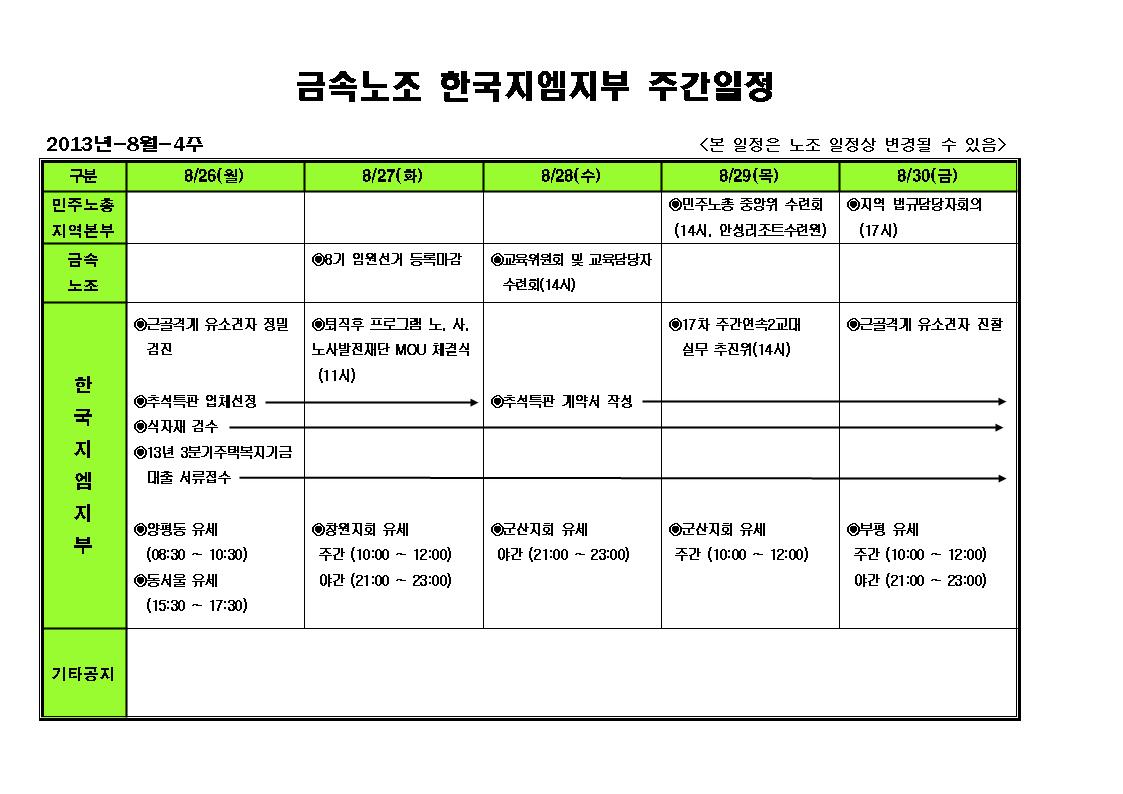 ÁÖ°£ÀÏÁ¤ 8¿ù 1ÁÖÂ÷