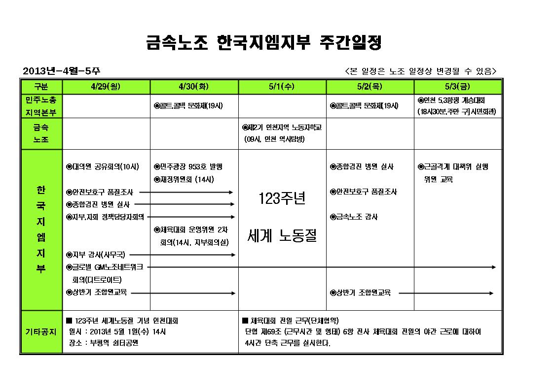 ÁÖ°£ÀÏÁ¤ 5¿ù 4ÁÖÂ÷