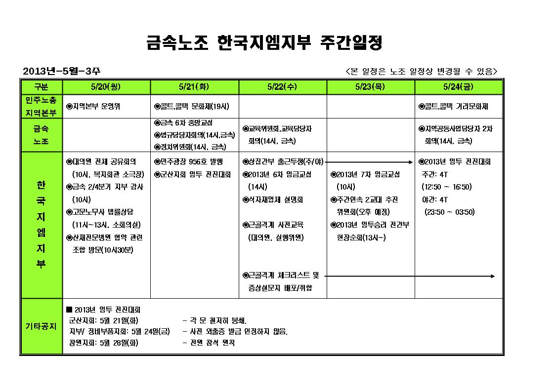 ÁÖ°£ÀÏÁ¤ 5¿ù 3ÁÖÂ÷