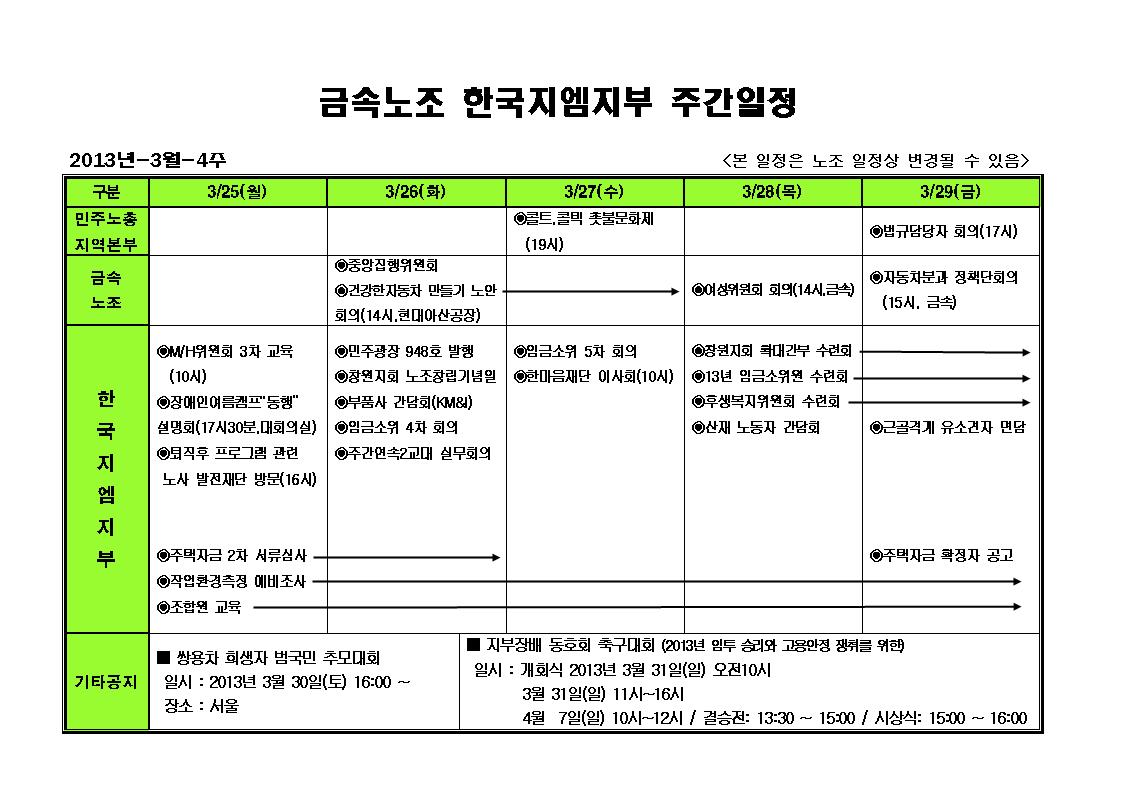 ÁÖ°£ÀÏÁ¤ 3¿ù 4ÁÖÂ÷