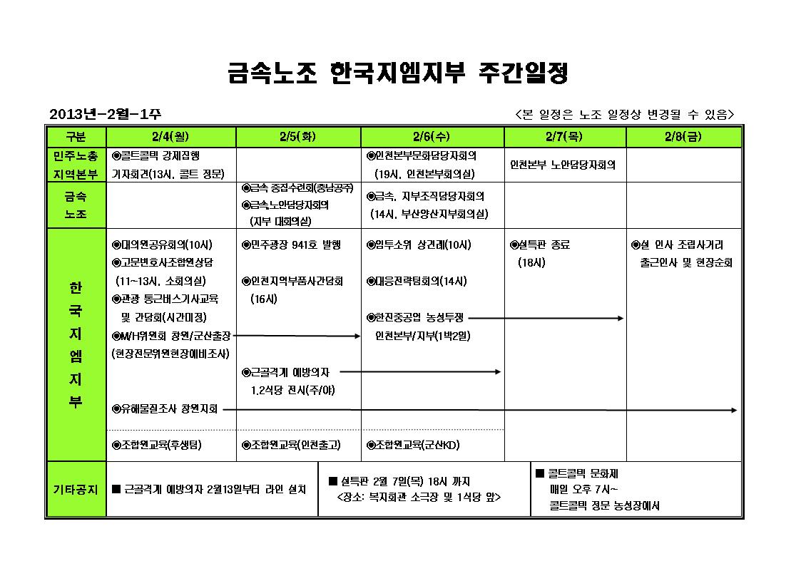 ÁÖ°£ÀÏÁ¤ 1¿ù 2ÁÖÂ÷