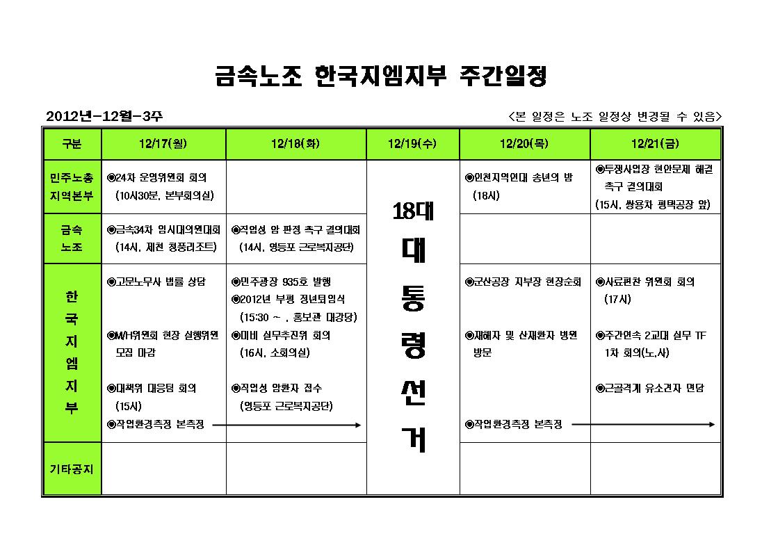 ÁÖ°£ÀÏÁ¤ 12¿ù 3ÁÖÂ÷