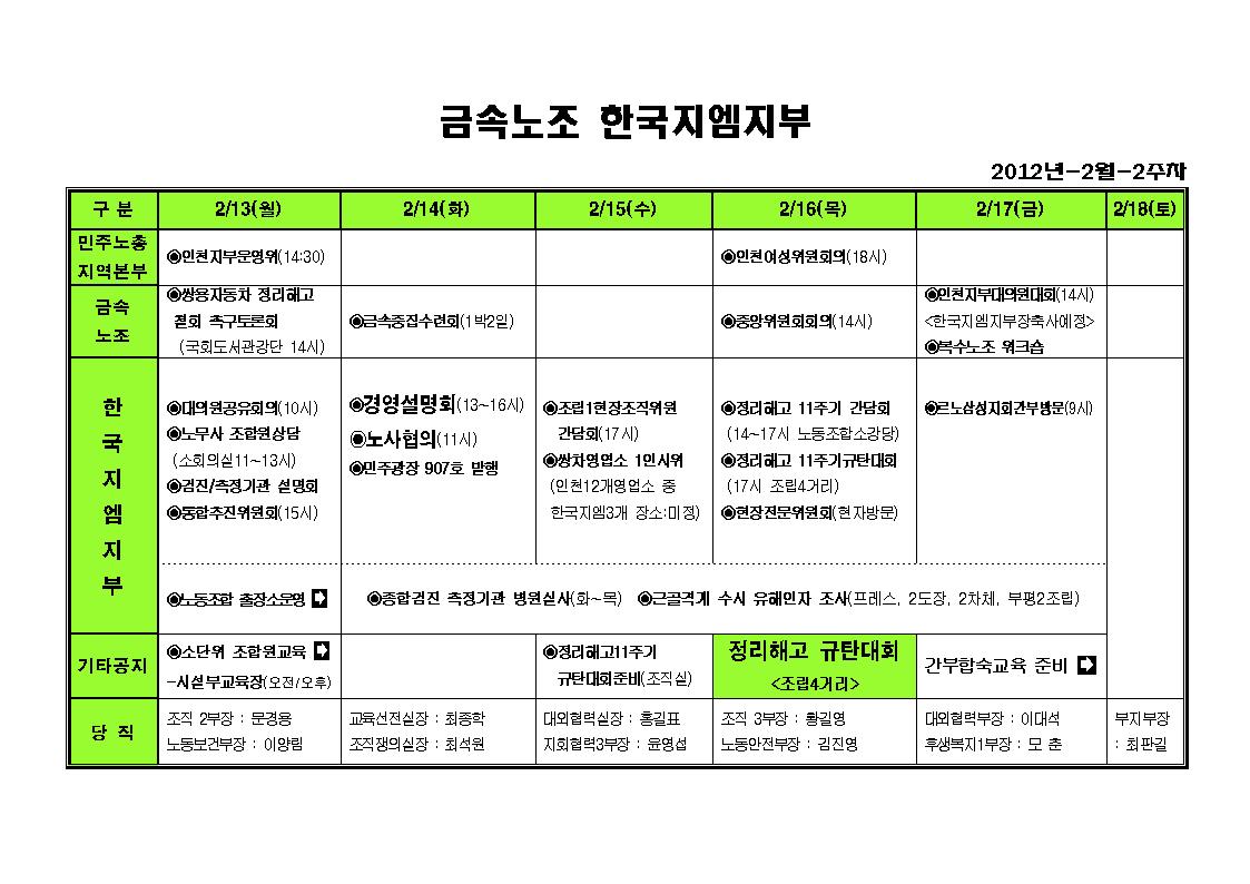 ÁÖ°£ÀÏÁ¤ 2¿ù2ÁÖÂ÷