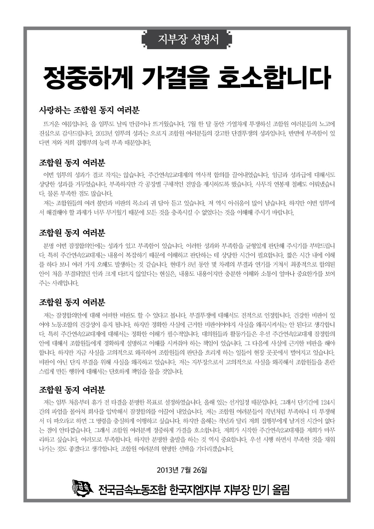 ÁöºÎÀå ¼º¸í¼ - Á¤ÁßÇÏ°Ô °¡°áÀ» È£¼ÒÇÕ´Ï´Ù