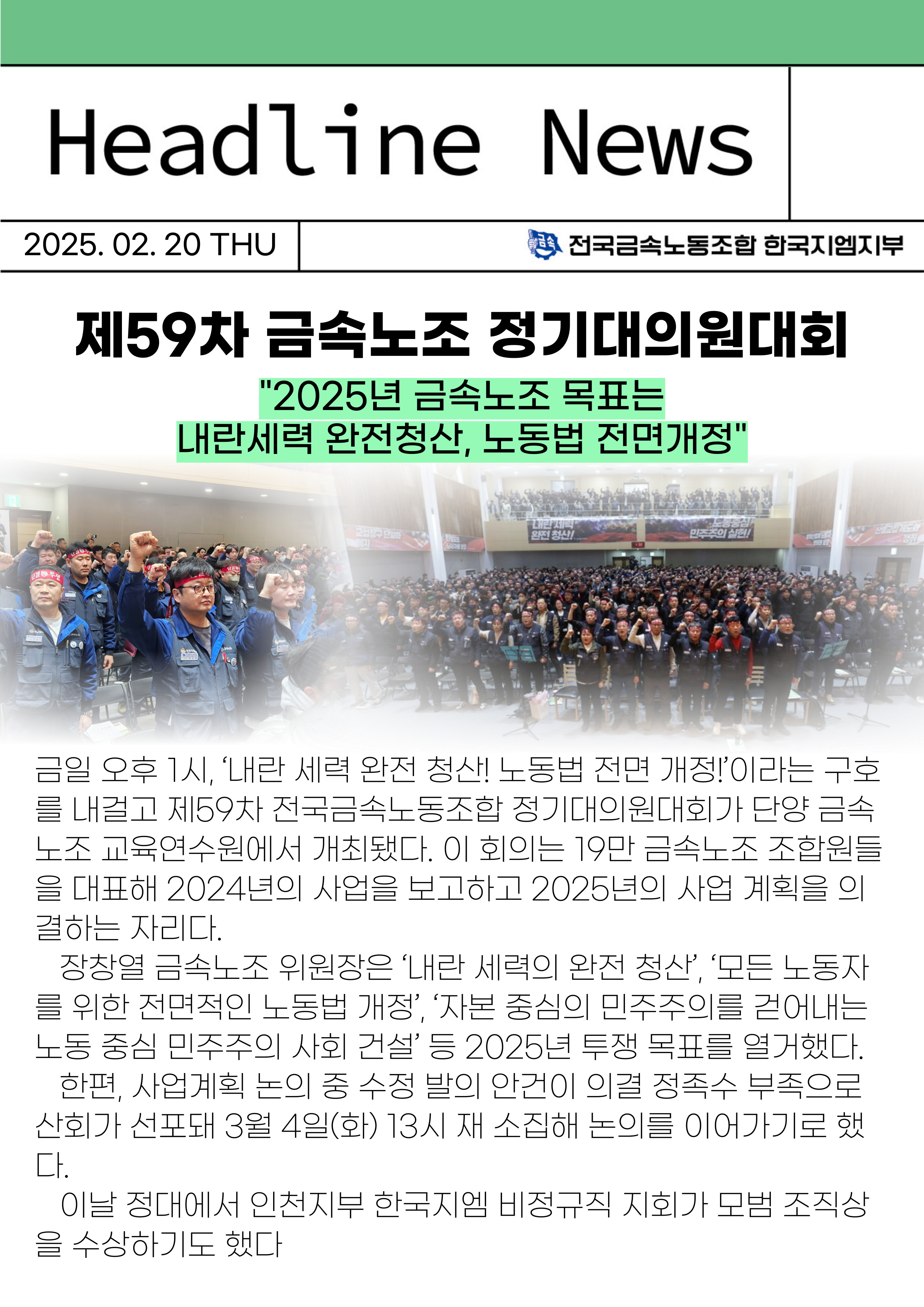 2025.02.20 Á¦59Â÷ ±Ý¼Ó³ëÁ¶ Á¤±â´ëÀÇ¿ø´ëȸ
