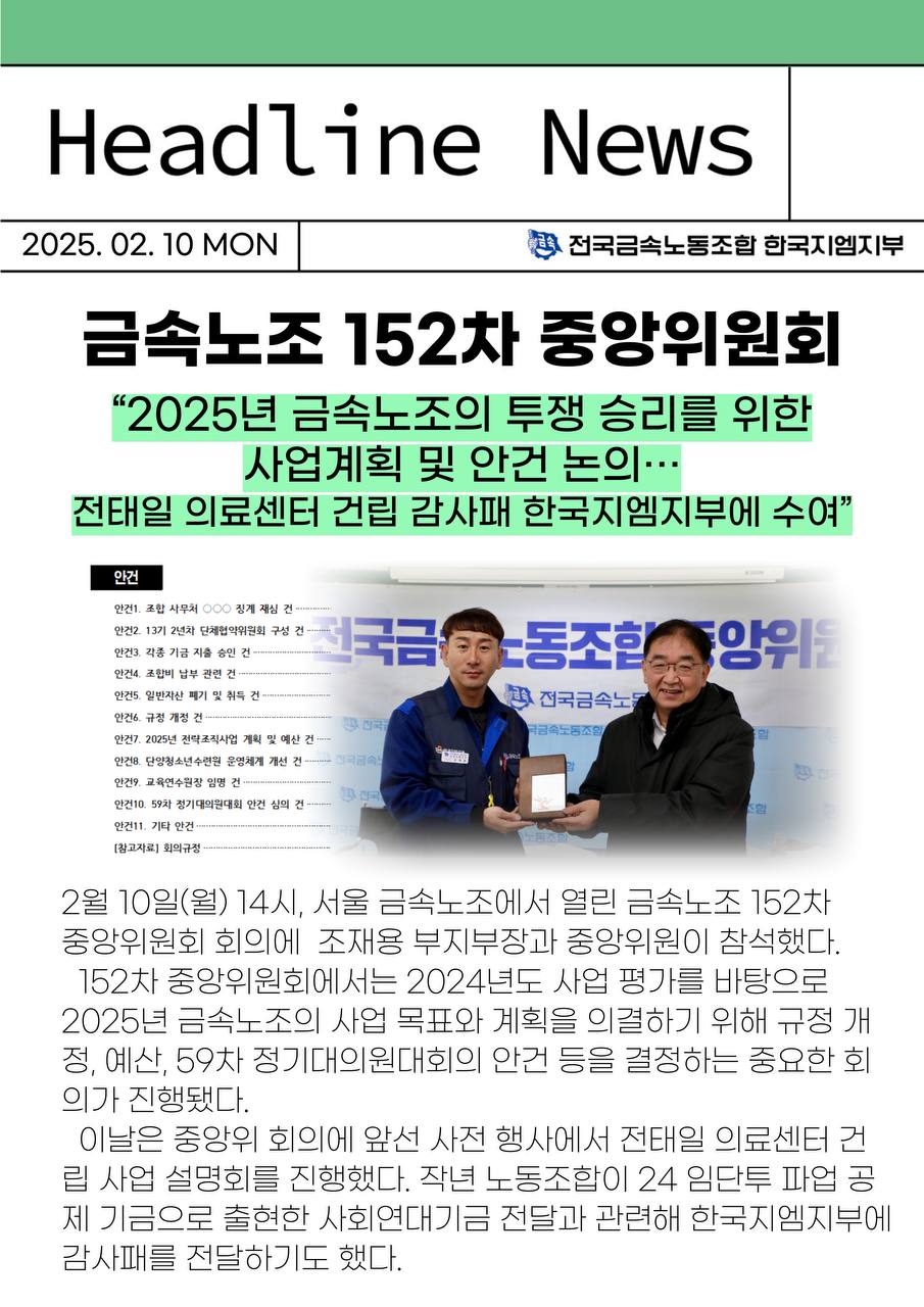 2025.02.10 ±Ý¼Ó³ëÁ¶ 152Â÷ Áß¾ÓÀ§¿øÈ¸ ȸÀÇ