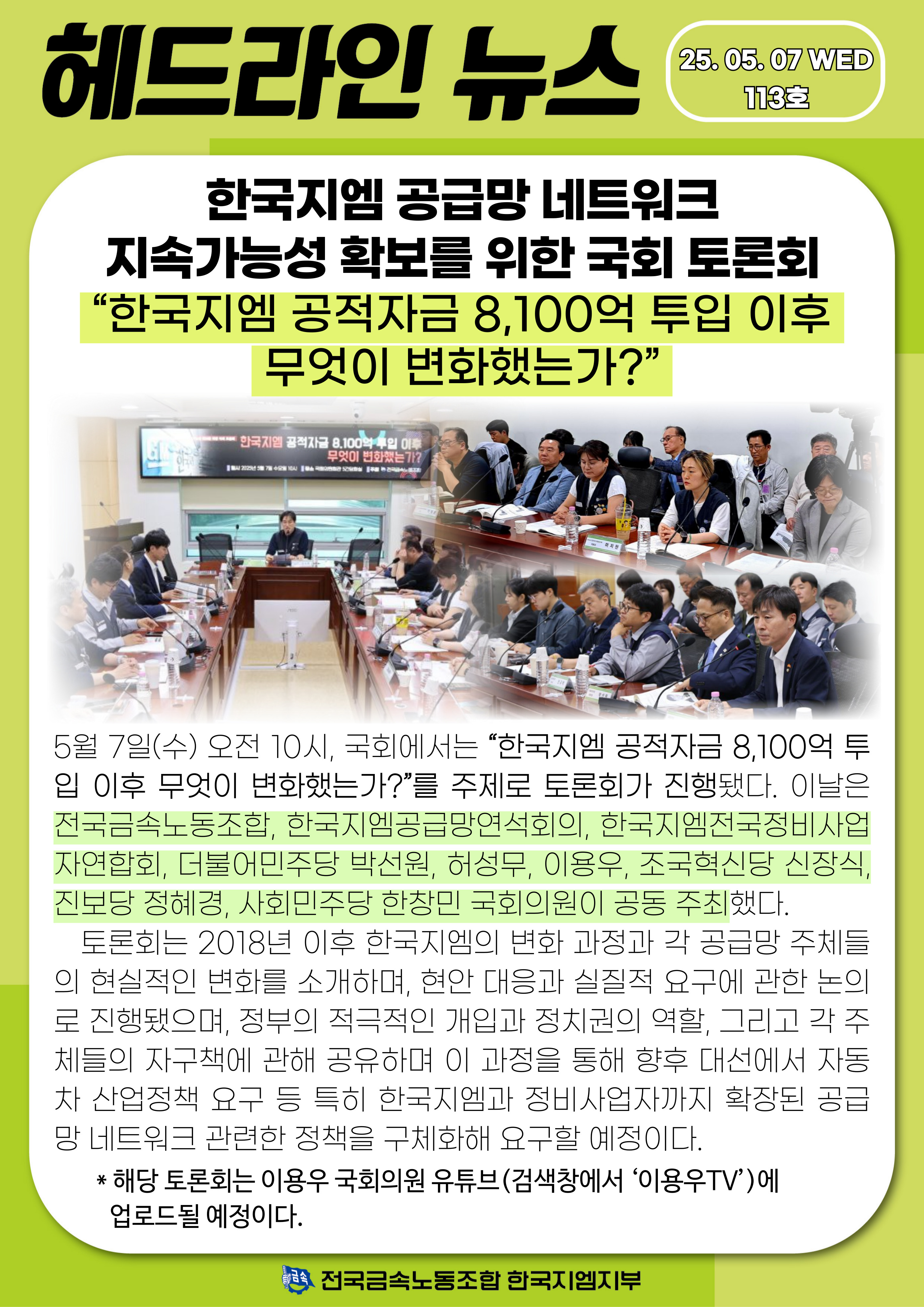 2025.05.07 Çѱ¹Áö¿¥ °ø±Þ¸Á ³×Æ®¿öÅ© Áö¼Ó°¡´É¼º È®º¸¸¦ À§ÇÑ ±¹È¸ Åä·Ðȸ